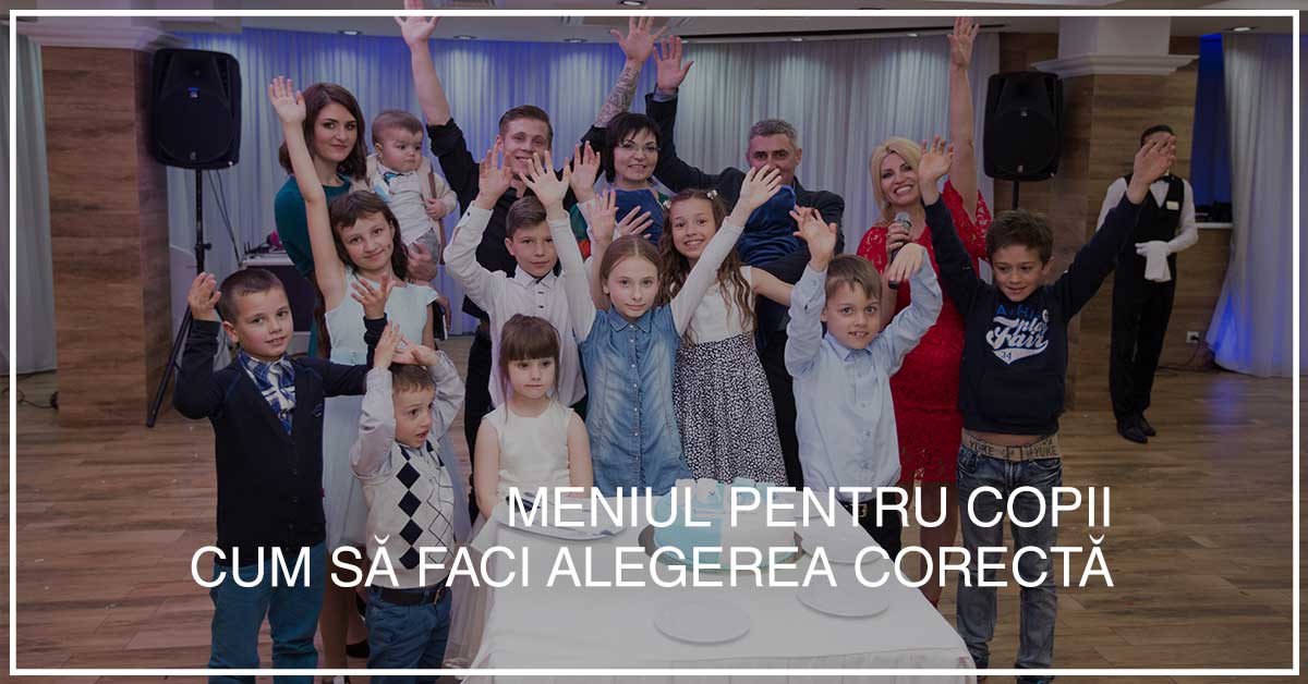 Alegerea unui meniu pentru copii nu este o sarcină ușoară și trebuie să te gândești din perspectiva vârstelor diferite care vor fi la eveniment. Gustările alese nu trebuie să fie condimentate în exces, mai bine să excluzi ceapa, usturoiul din gustări. De asemenea, interesează-te dacă sunt printre invitați copii vegetarieni sau alergici la unele alimente, ca să soliciți de la restaurant evenimente un meniu individual pentru ei. Un alt moment important este temperatura de servire a gustărilor, evită înghețata rece sau sucurile cu gheață.