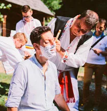 Am ajuns în ziua nunții, totul începe la casa mirelui, unde acesta este bărbierit simbolic, semn al trecerii în rândul bărbaților. După aia mirele cu tot alaiul pornește după nași și apoi, toți împreună se îndreaptă la casa miresei.