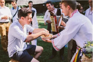 Urmează încă un obicei foarte important de cinstire a nașilor – spălarea mâinilor. Mirele va turna apă pe mâinile nașilor, iar mireasa va pregăti un prosop pentru ca aceștia să-și șteargă mâinile, imediat după asta, tinerii vor înmâna nașilor și darurile pregătite. Așa își manifestă mirii marele său respect pentru nașii aleși.